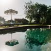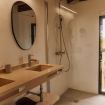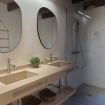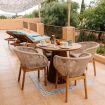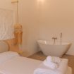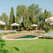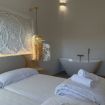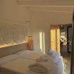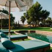 Para acceder a este alojamiento atravesamos un pequeño patio y desde la escalera llegamos a una gran terraza desde donde se divisan los jardines de la finca.