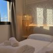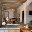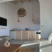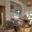 La luz inunda toda la vivienda por las cristaleras que ocupan toda una fachada. En la amplia sala de estar con zona de comedor, el protagonista es el sofá de obra. Desde la cocina abierta al salón divisamos el precioso palmeral.