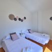 Apartamento Dúplex con tres habitaciones Dobles, con dos camas individuales cada una, y dos cuartos de baño equipados con plato de ducha, uno de ellos en suite. Cuenta con una terraza frontal con vistas al mar, dos terrazas laterales y un amplio balcón.