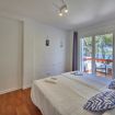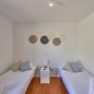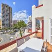 Apartamento Dúplex con tres habitaciones Dobles, con dos camas individuales cada una, y dos cuartos de baño equipados con plato de ducha, uno de ellos en suite. Cuenta con una terraza frontal con vistas al mar, dos terrazas laterales y un amplio balcón.